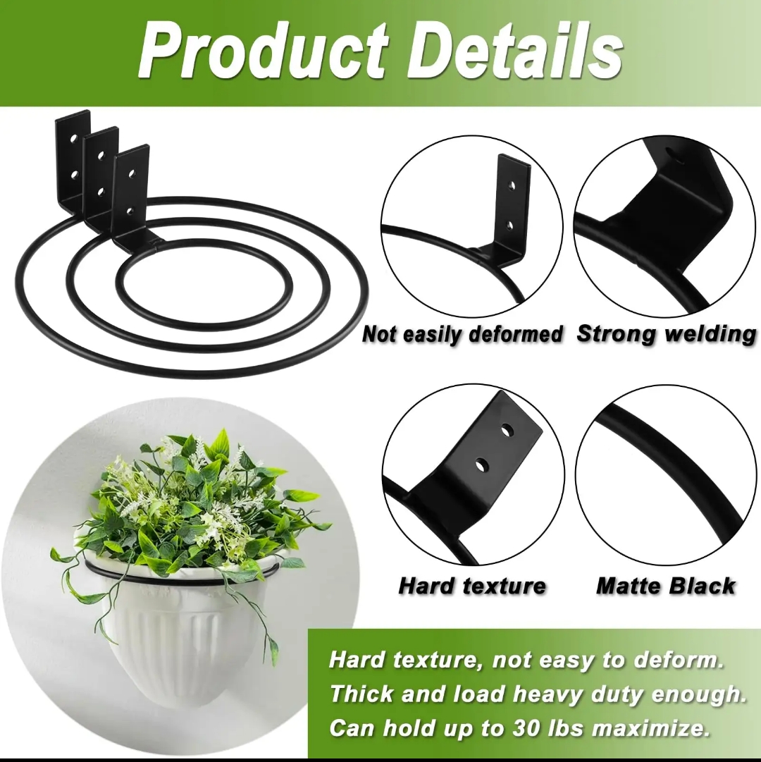 The circular ring design provides stable support for pots, while the wall-mounted bracket ensures easy installation. Ideal for balconies, gardens, patios, living rooms, kitchens, and outdoor walls, this holder adds a modern and organized look to your space.